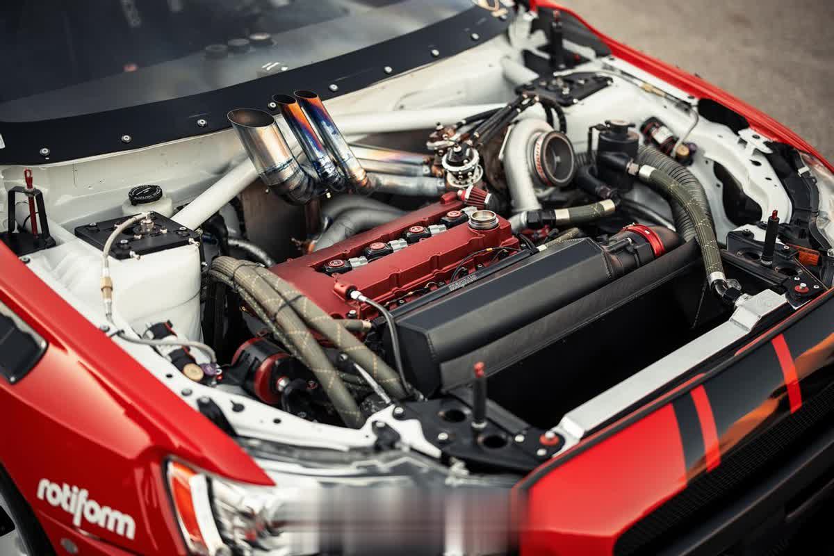 当年网友都说4B11T发动机强度不如4G63,偏偏这么多年了力大砖飞的案例比比皆是,今天这辆EVO也不例外。整副发动机被打散重新强化,换上了Garrett GTX3582R大号涡轮,重新定制了进排气,最终获得了轮上662马力/625牛米的动力输出。