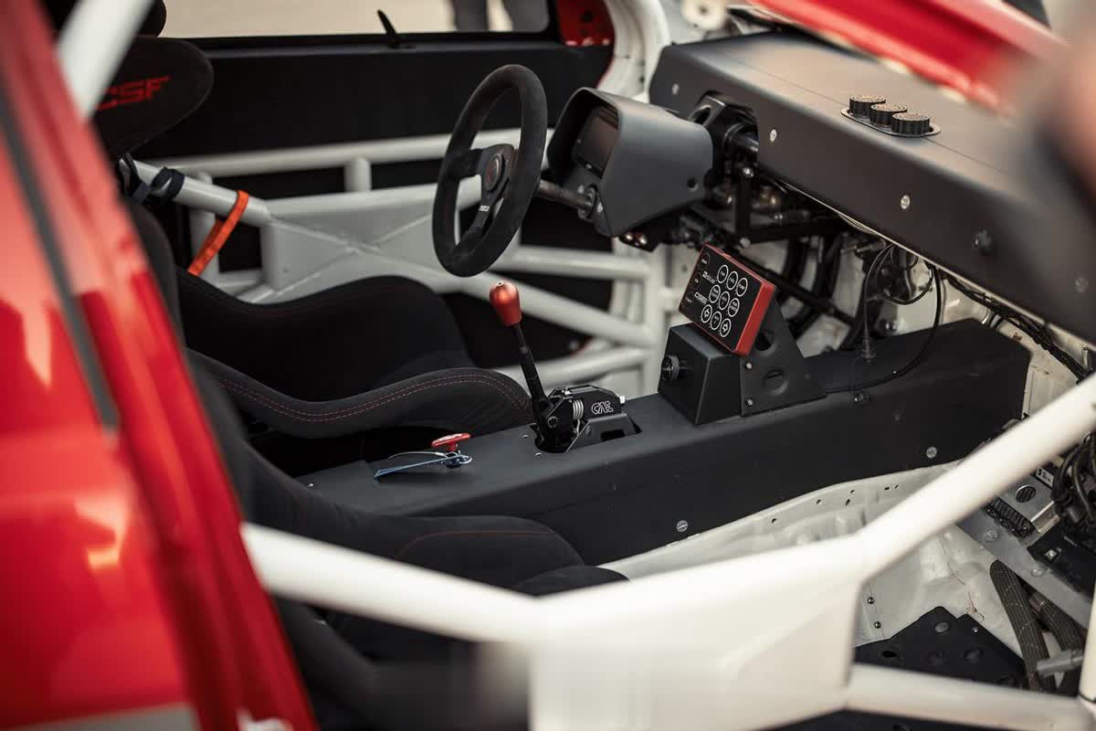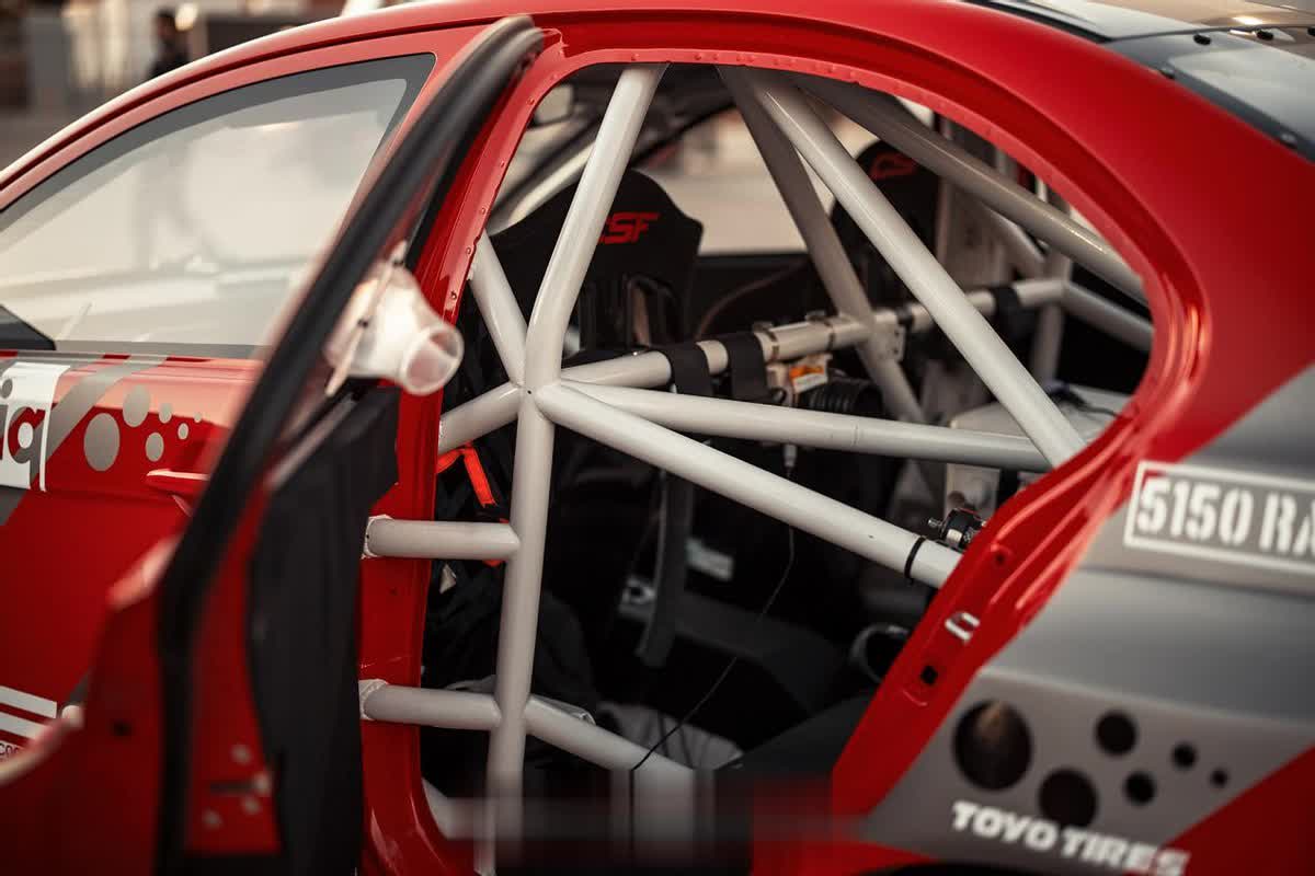 作为赛车,内饰也是能拆多少就拆多少,只保留赛车的基本功能就足够了。一套符合赛会要求的防滚架必须出现在这里,只不过想了解一下,车手要钻进驾驶舱的时候会不会很费劲呢?