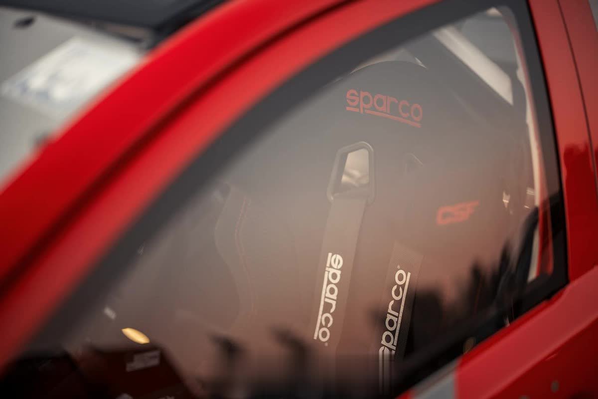 除此之外,内饰已经被完全掏空,取而代之的是简洁的赛车仪表台,除了必要的赛用仪表和控制台之外,还有Sparco的赛车方向盘、安全座椅以及安全带为车手保驾护航。